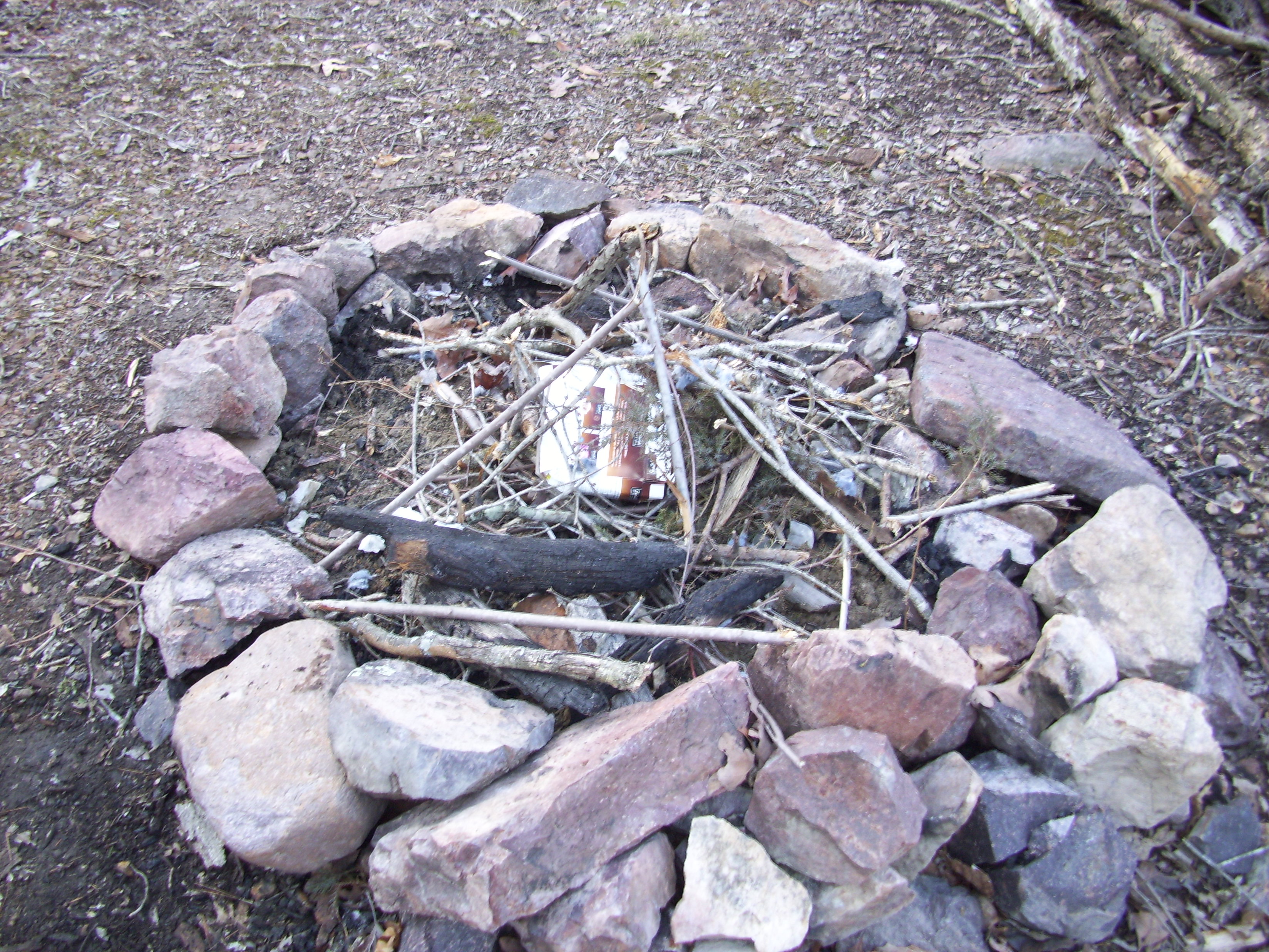 One thing that is pretty neat about this site is that somebody carried a storage tote out to it that is full of all sorts of kitchen equipment. It has a grill for the fire, pots and pans, and utensils among other things. If you wanted to bring all sorts of food with you, you would be able to reasonably cook it without packing any kitchen equipment.