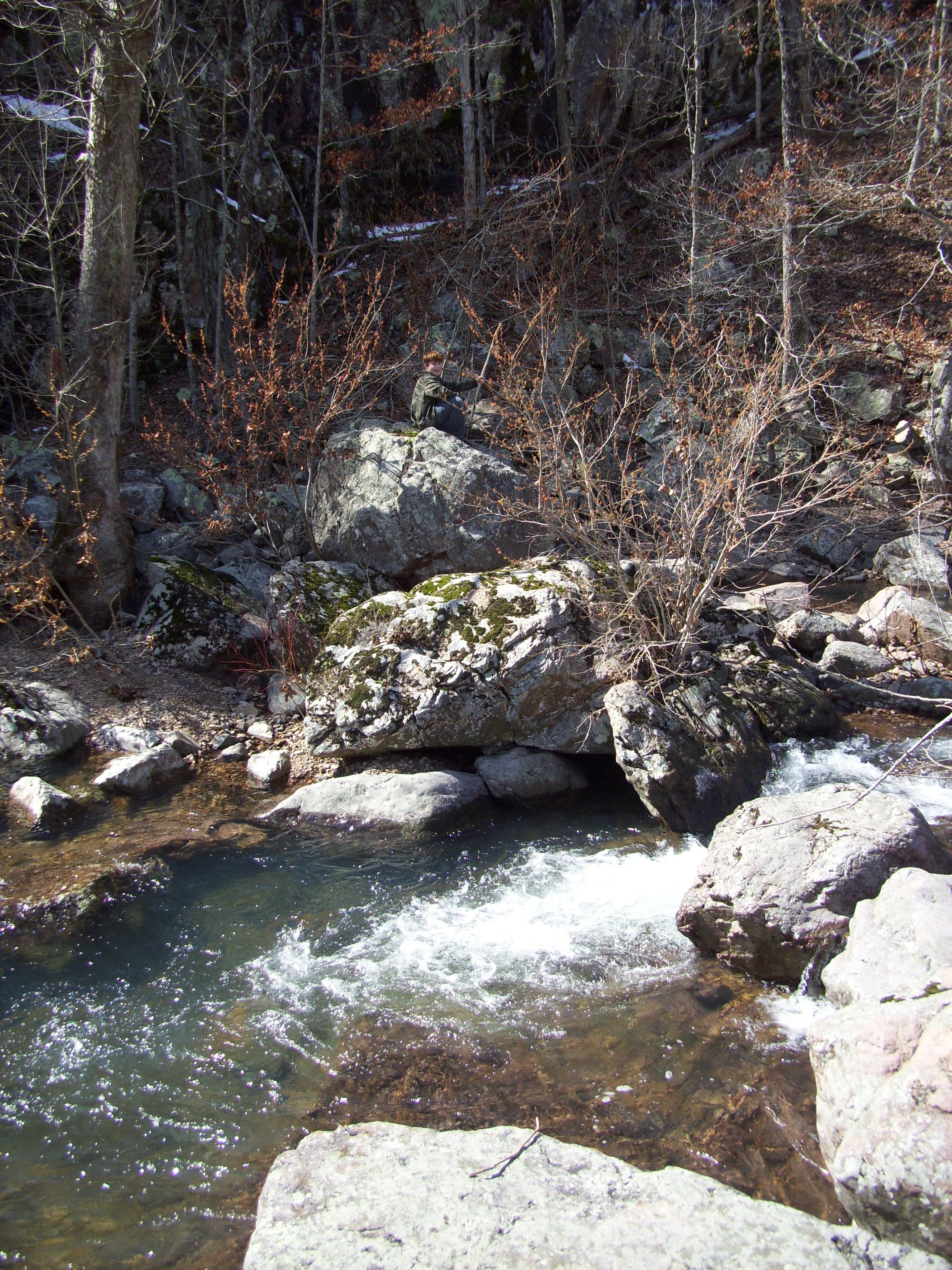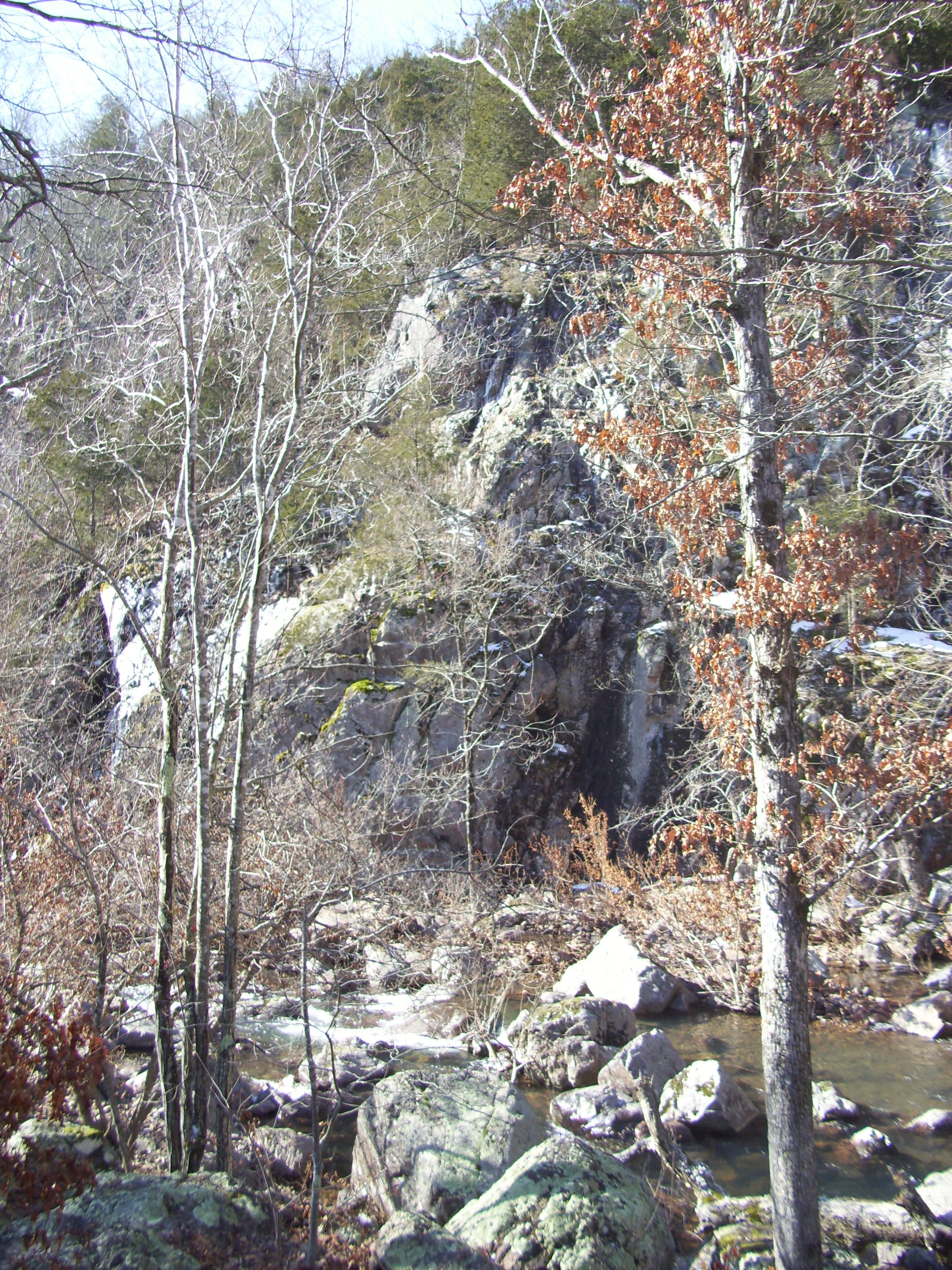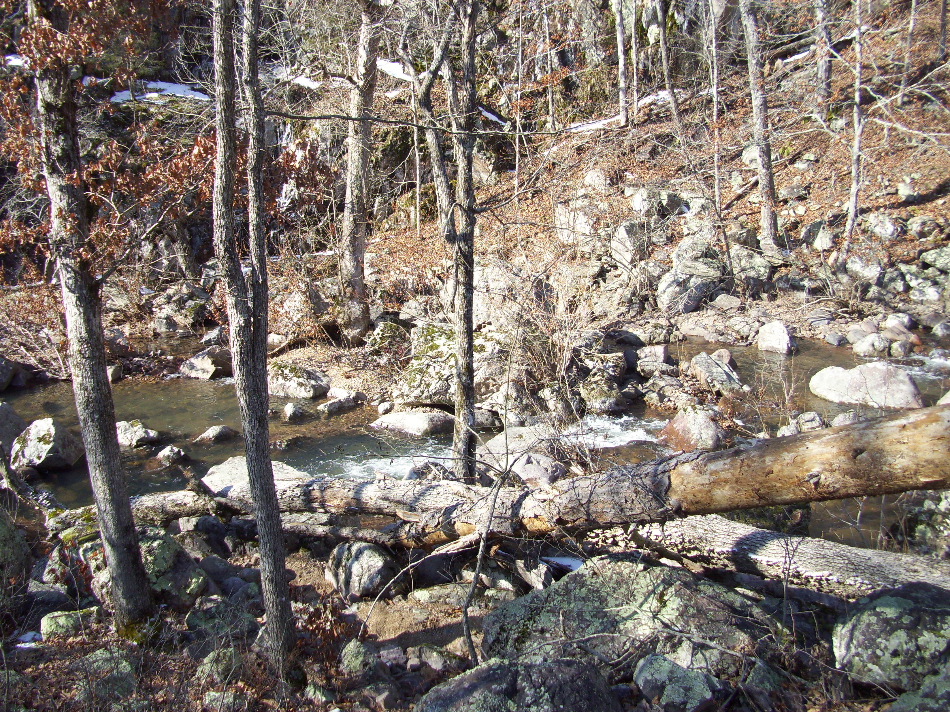 Lower Rock Creek is a wilderness area about 8 miles or so west of Fredericktown, MO. There are no signs that point the way like any typical natural area. From St. Louis you get on 55 south to 67 south. Take that all the way through Fredericktown until you get to MO E. Go west (right) on E for about 8 miles, and pretty soon after you cross the bridge over the St. Francois River, you will come to County Road 511, on your right hand side. Turn right on CR 511 and take that past the fields on either side about half a mile. The road will incline down and there is a little concrete bridge that goes over a creek. Almost immediately past the bridge on the left is a gravel jeep trail. That is the road to the parking area and trailhead. Take that for almost half a mile until you get to an old gate, with the same stream you crossed over just beyond it. This is where you park. Beyond the gate and across the creek is the trail. I believe there is another trail that heads out from the parking area parallel with the creek, but I have no idea where that one goes, yet. If you don’t feel that your vehicle can make it all the way down the jeep path, there are a couple spots on the way that you can park at.