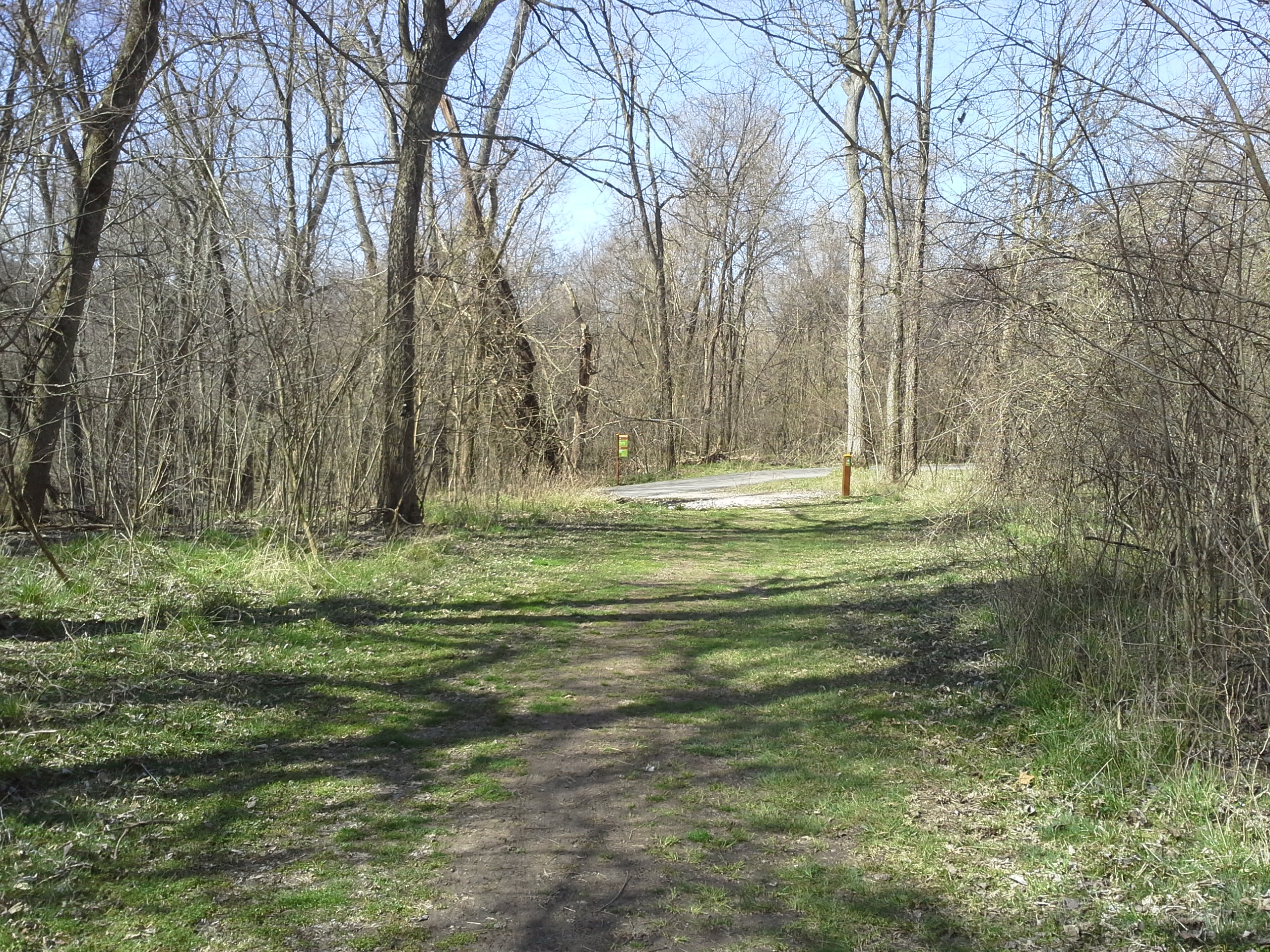 So there are 2 trails at this park. The main one is the Meramec Greenway trail which is a paved, 2 mile long, parking lot to parking lot path that follows the river for a bit and then turns to parallel highway 55. The Tall Timbers trail loops off of and back to the Meramec Greenway trail, and is just over a mile long. This one is a dirt path, and I like to hike down the main trail to this one, loop around, and then retrace my steps to the parking lot.