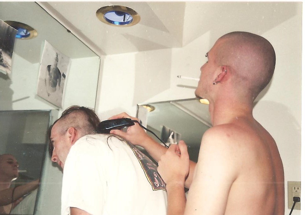 Piercings, cigarette hangin’ out of my mouth, shavin’ my buddy’s head? Look at me expressing myself.