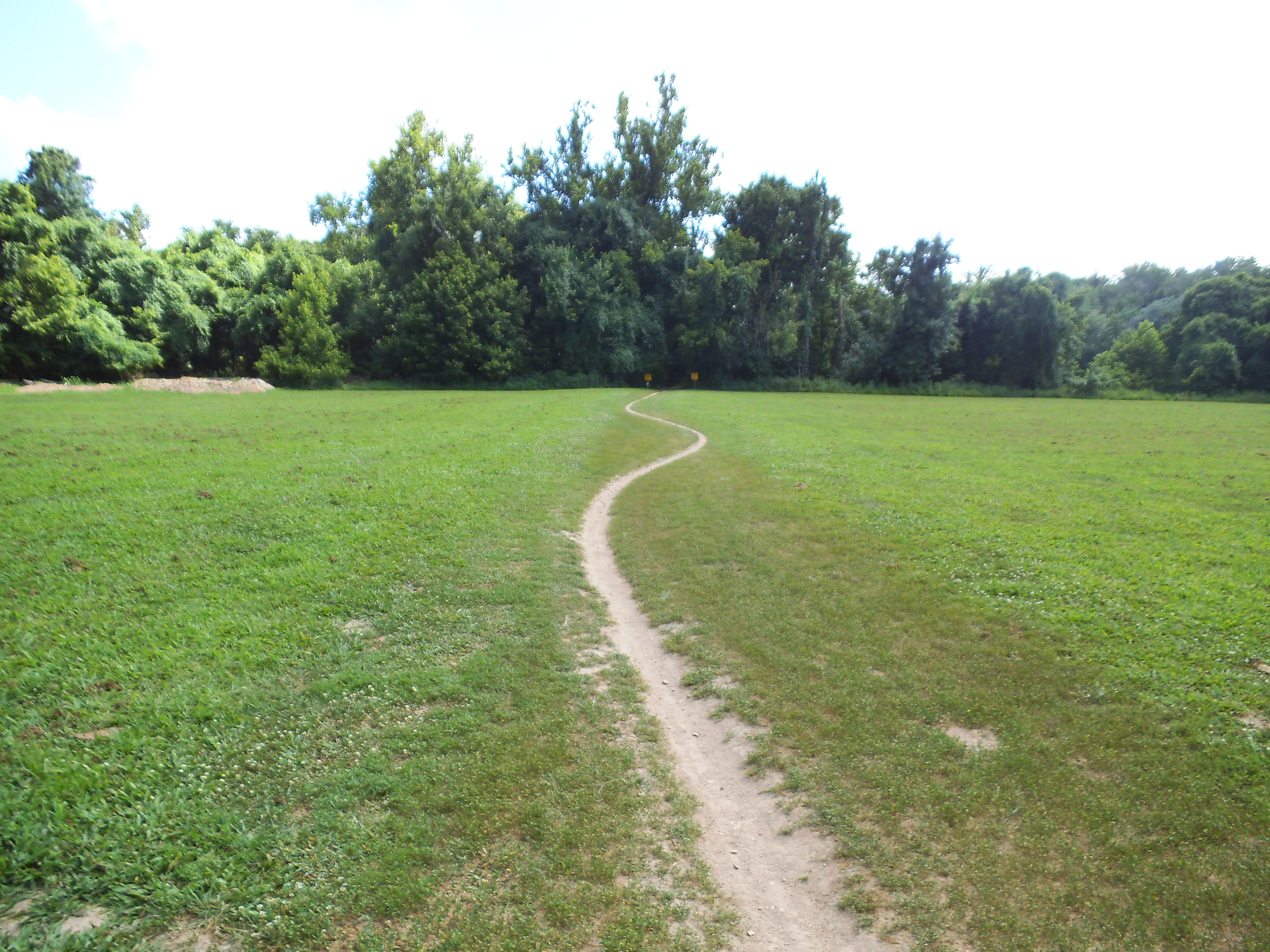 DSCF2201At this point the trail starts to head back in the direction of the road, though the vine covered cottonwoods and sycamores of the river bottom. I noticed a bit of Stinging Nettle and Poison Ivy in the underbrush during this section, so it is a good idea to stay on the trail if you can help it. At just about two miles into the hike, you make a right turn and cross a big open field and then back into the woods and next to the river again. However, before you turn right and cross the field, if the climbing wore you out and you are ready to quit, you can maintain the direction you were on and the trail will take you to the park road. You make a left on the road and it will take you back to your car.