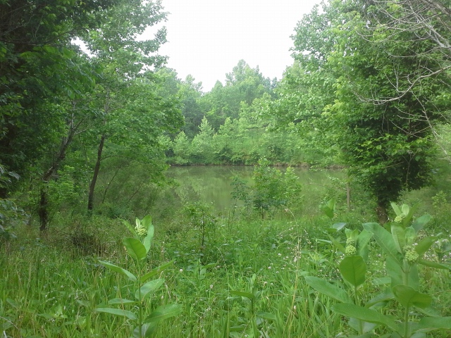 I’m just estimating here, due to a lack of GPS and a more thorough map, but the trail is about half a mile to Beaver Creek. It traverses through some tall grassy areas, past a good sized pond, and to an old concrete bridge that crosses the creek, close to where it joins the Meramec River. It was at this point that we climbed down into the creek bed itself, thankful to get away from the ticks and chiggers residing in the underbrush.