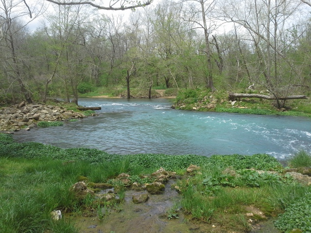 It is gorgeous! The water flowing out of the foot of the hill, flat and powerful, rushing to join the Current River is one of the reasons they call it the Ozark National SCENIC Riverways. Something about the liveliness of it as it propels sideways into the already moving current really creates a dynamic energy that can only be seen and felt by being there in person. This confluence, with its chilled and green foliage, is a beautiful example of the power held in these springs.