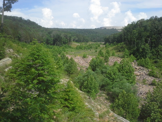 To see how it is now, in contrast with my memories of how it looked before, is a frightening and humbling vision. I remember driving down the road in this valley that was the park entrance, flanked by forest on both sides, with sights of the campground through the trees on the left. It was like a hallway, that wound through the park and eventually ended up at the parking lot for the river and the Shut-Ins. Now it is a open valley, dotted with sprouted sycamores, and boulders unearthed from the side of a mountain a mile away. It is nothing short of a miracle that the breach occurred in the winter. Had it been six months earlier or later, this would likely be a memorial trail to an awful tragedy.