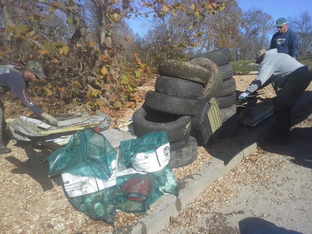 It is a cold Saturday morning at the start of November, and I am following Bernie Arnold and Brian Waldrop down Highway 19, out of Cuba, MO and into the woods along the Upper Meramec River. I am in a line of vehicles driven by Stream Teamers, and we are on a mission today. We turn on Route O and head into the forest and downhill for about four miles, winding through some of the prettiest countryside a person could be lucky enough to travel through. Little homes and hollows, along the worn paved road, down into the river bottom. We cross a bridge, follow the river on one side, and soon enough our convoy turns left into the Riverview Access Conservation Area.