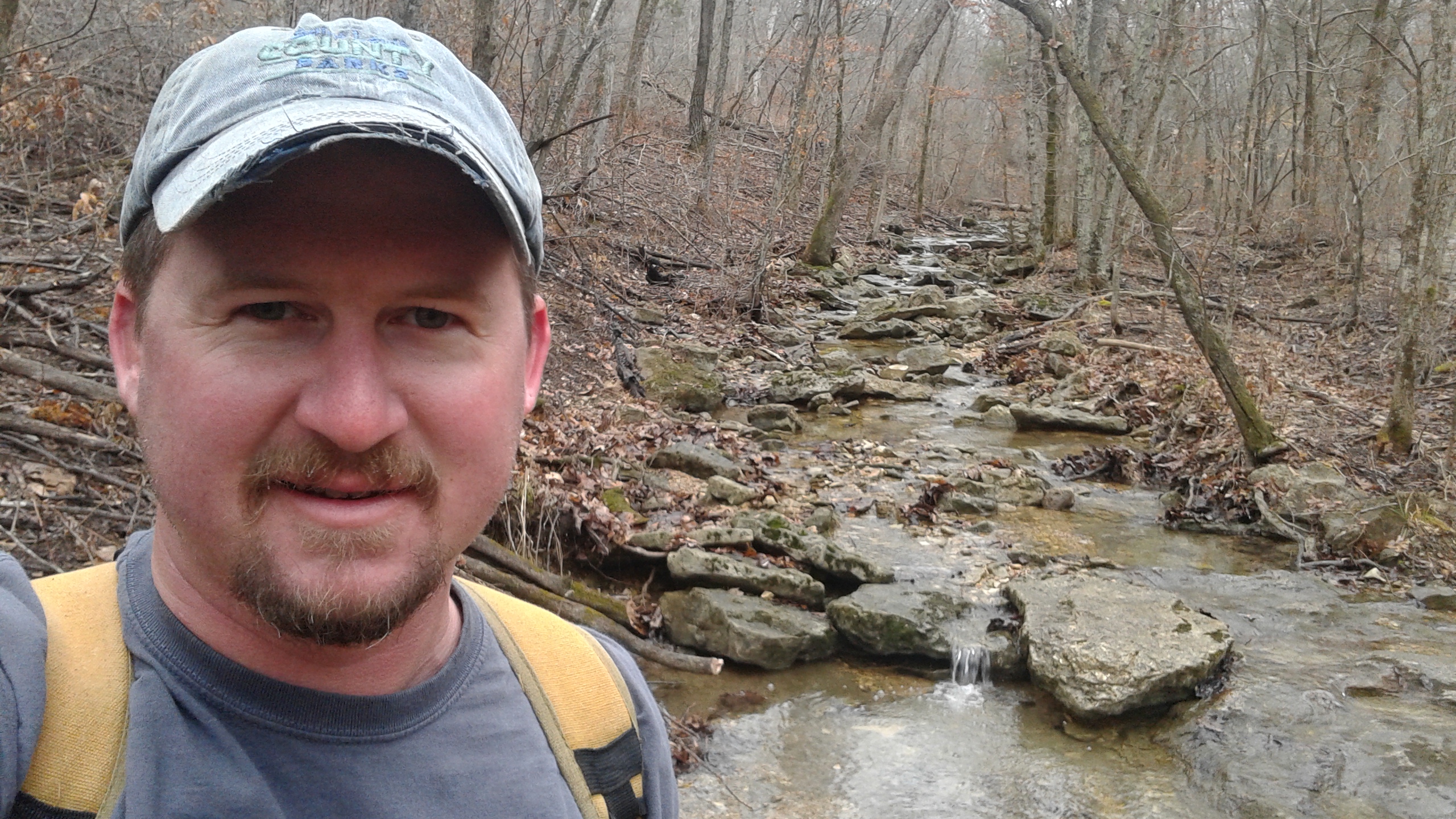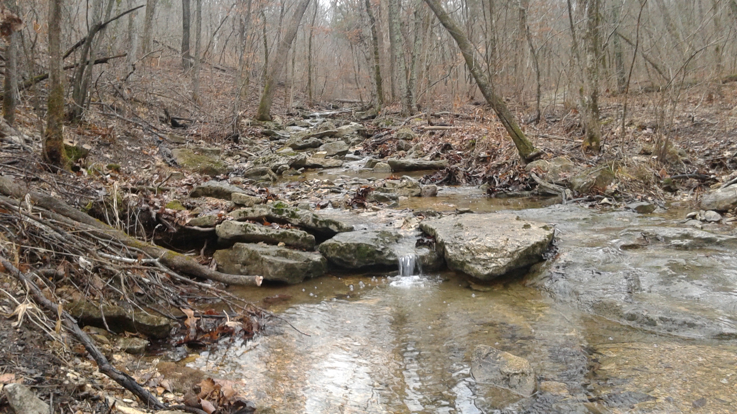 When you finally get back in there to the southernmost point on the trail, waaaaay up the hill along the ridge, no pictures or descriptions adequately convey the immensity of these woods. Couple that with the openness of the forest in wintertime, and you feel small, like a dot on the map. It isn’t the grandeur of the peaks in the Rockies, but it is what we have here in Missouri and it is pretty cool to experience. To look out through the trees across the breadth of hillside reaching down from where you stand, it isn’t a feeling that you get from a lot of trails around. Take your time and let it soak in a bit. And then to get down the mountain and hike along the stream across from the broad hillside where there has been some (prescribed?) burning this past year, it really invokes a striking sense of depth and perspective that we don’t have that often in our daily lives, which I think we need on a regular basis. Let go as much as you can from the distractions in your life and allow yourself to connect to this, dynamically. The next steps you take will be to walk away, and it would do you good to carry some of this back with you.