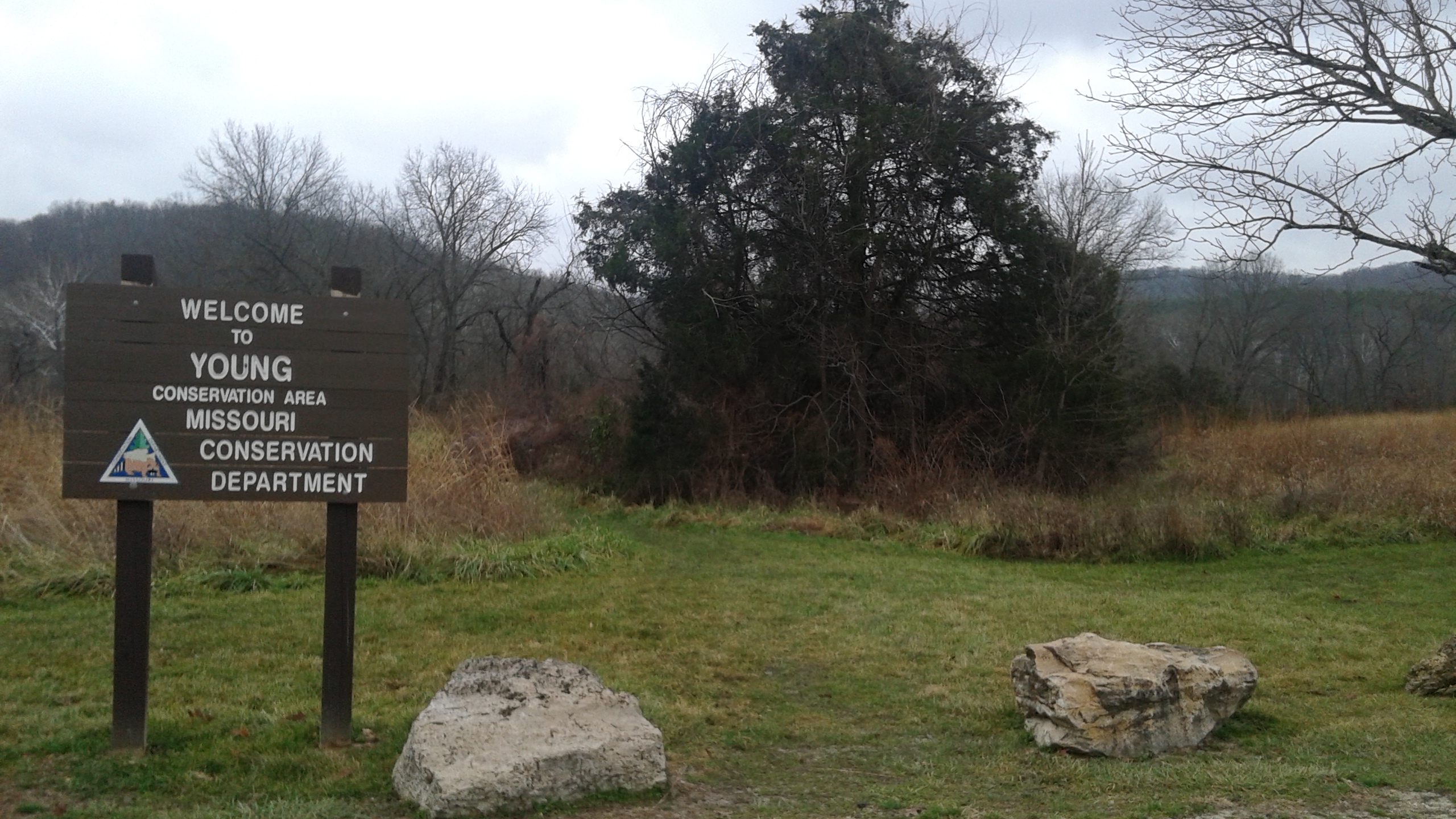 2014-12-24 13.31.34From the interchange of Interstate 44 and 270, take 44 west toward Eureka for about 11 miles. Exit at Route 109 (Exit 264), and make a left to go under the highway and head south on 109. After just about 2 miles on 109, make a right at the “T” intersection and head west on Highway FF. After about 3 miles on FF, the main parking lot for Young Conservation Area will be on your left.