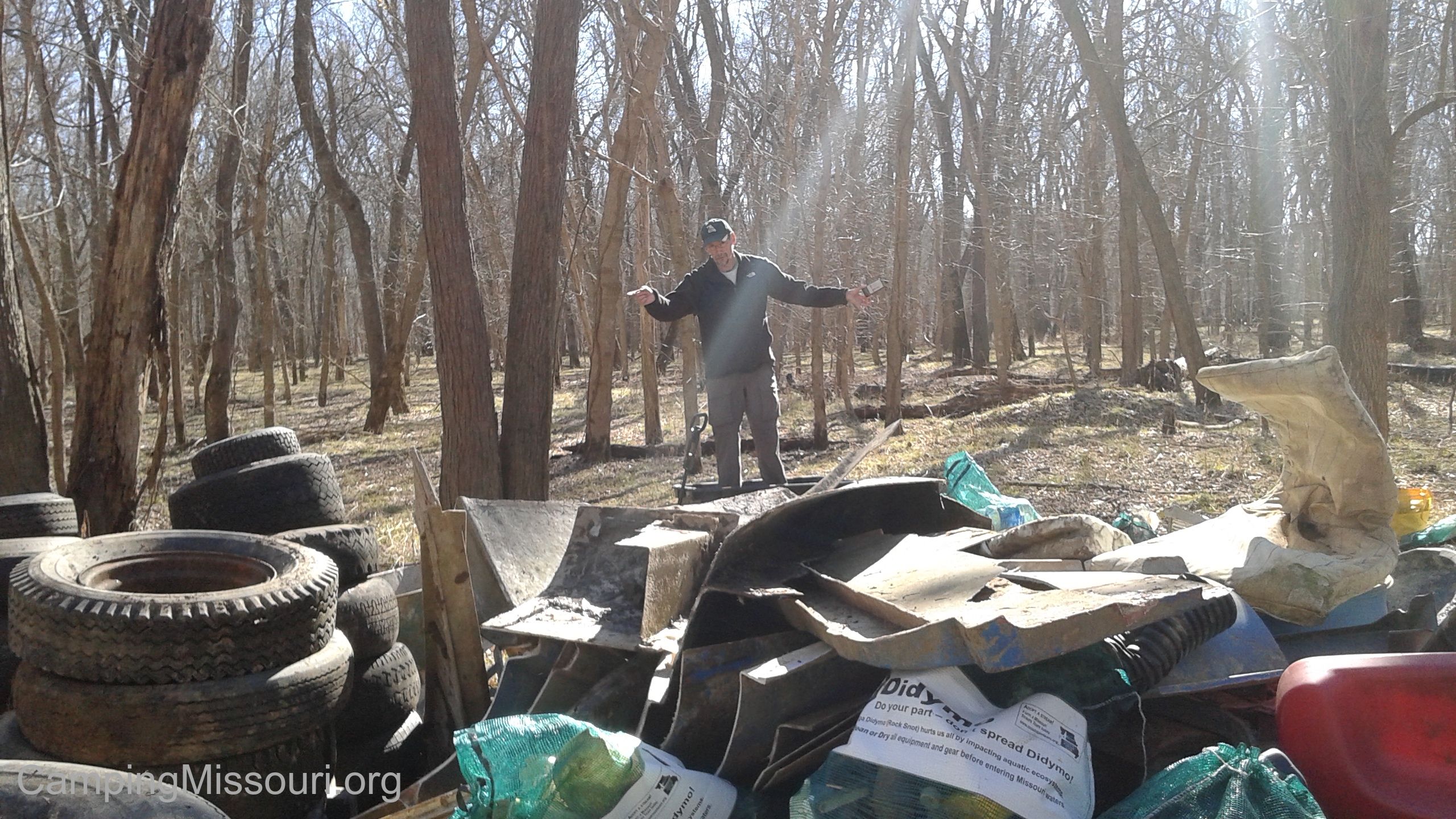 My friend Jay (drumroll, please…of Restoration Streamkeepers, Stream Team #5065!) is a seemingly innocent guy, among others (Bernie and Brian of The Mighty 211…I’m referring directly to the two of you). He has a good heart, and a desire to leave the world in a better condition than it was when he found it, like just about every Stream Teamer I know. He has a tendency to call you up, with a statement somewhere along the lines of “Hey, I’m gonna go do this, and I wanted to invite you along.” And you say “Yes, I will be there” because Jay is the kind of guy who involves himself in projects that deserve that sort of response. Projects that are going to be a bit of effort, but surely an adventure too. So when Jay messaged me and said that he and Besa and Chris (other friends and Stream Team #4872) are looking to do a cleanup at Shaw Nature Reserve out in Gray Summit, MO, of course I said “Sounds great! I look forward to it!”. Little did any of us know for sure what sort of hard work was really set before us…