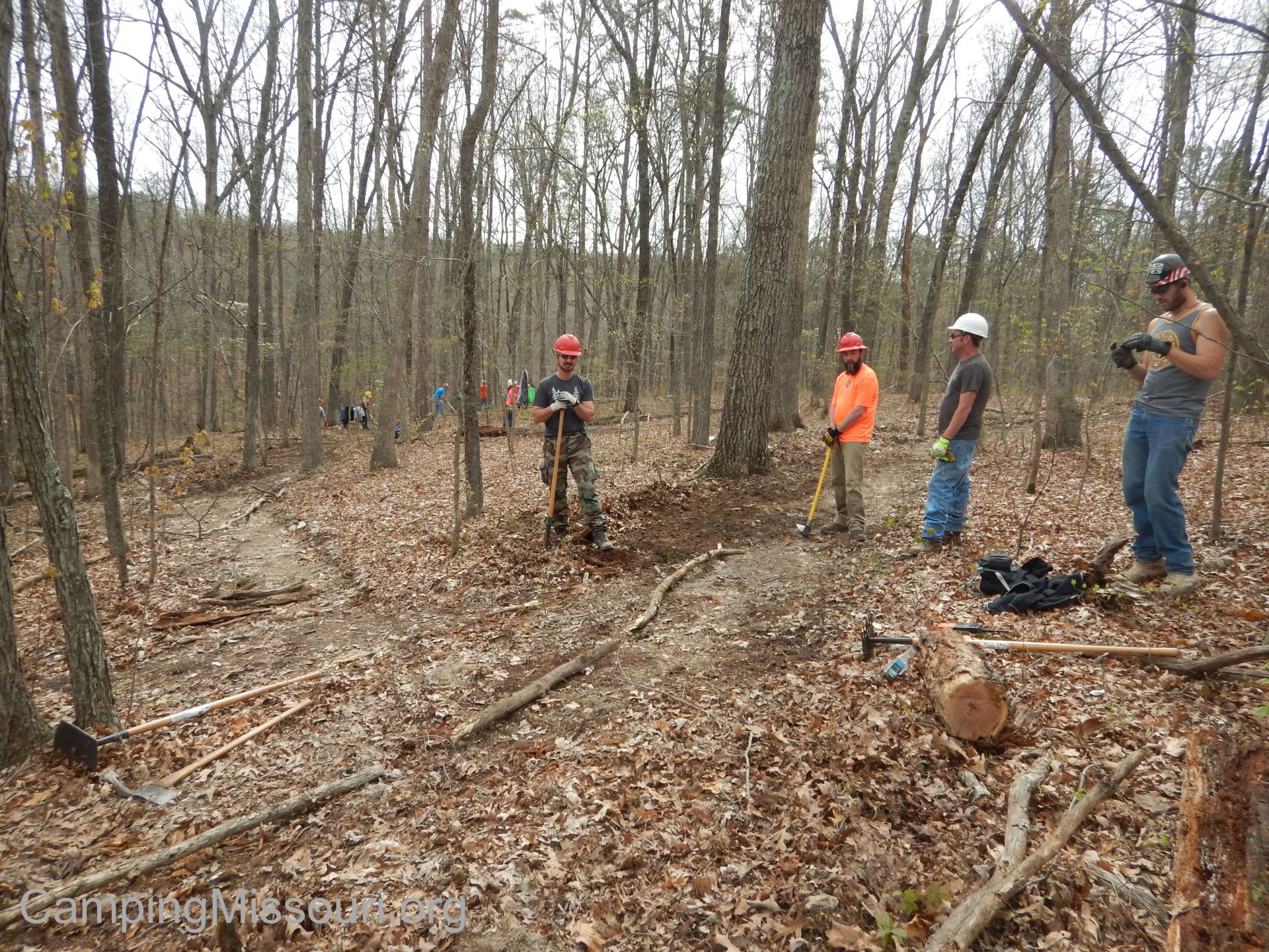 Now the OTA has trail building and maintenance events all the time, but they only have Mega Events twice a year. The weekend of THIS Mega Event, we were going to be working on a mile of reroute on the Berryman Trail. The Berryman Trail was constructed in the 1930s by the Civilian Conservation Corps, and is a 24 mile loop in the Mark Twain National Forest between Potosi and Steelville, MO. It is a favorite of hikers, mountain-bikers, and equestrians, and it shares about 12 miles on its western side with the Ozark Trail. As the OTA has done a lot to maintain THAT part of the Berryman Trail, as the advocates and professionals that they are, they had taken it upon themselves to work to improve the eastern leg as well.