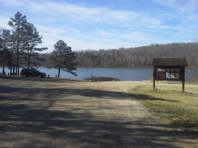 So you take Interstate 55 south, about 22 miles, to exit 174B which is US-67 south toward Bonne Terre/Farmington (my most-driven outdoor excursion route at this point). Stay on US-67 south, through Bonne Terre, through Farmington, and all the way to MO-E just south of Fredericktown. Turn right (west) on MO-E and take that about 19 miles to County Road 124, on the left side of the road very soon AFTER County Road 134. Make a left (the only option) onto County Road 124, and take that about three miles to County Road 131. Make a left onto County Road 131, and after about two miles it ends in the Crane Lake Recreation Area.