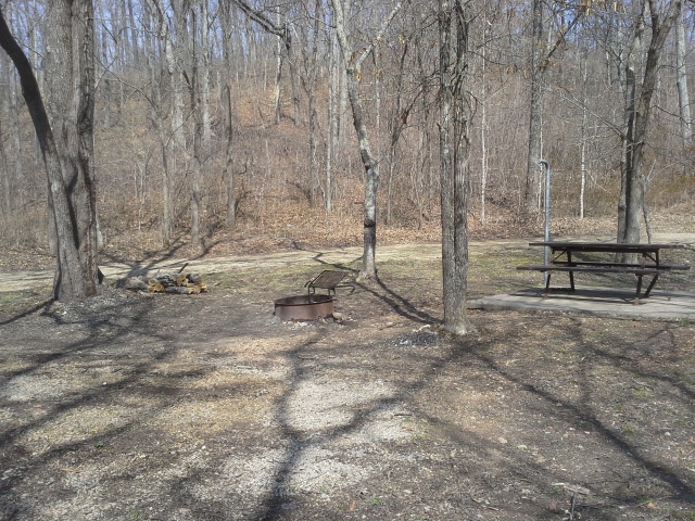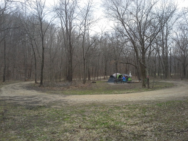 After a group vote, deciding whether to just set up camp right where we were or head back and through Potosi to pull into Washington State Park and call it a night in a more civilized area, I was voted down 2 to 1…AGAIN. So we got back into the car and drove back up what now looked more like a road to nowhere than a road to the campground, and back out to the parking lot. Heading toward the exit and back the way we came, considering the failures of the night’s adventure so far, we came to an intersection with a road to the south I hadn’t noticed on the way into the recreation area. As I slowed down and turned the car slightly to the right, having had my high beams on permanently for a while now, I saw just a bit off into the woods the silhouette of a picnic table, and across the road from that what looked to be the faded yellow block walls of the vault toilets of the campground. Turns out it wasn’t at all down that last turn we had made. Right then I made the executive decision to camp there, and with a renewed happiness, the kids and I slowly drove through this little campground and surveyed our options for where we were going to set up our tent for the night.