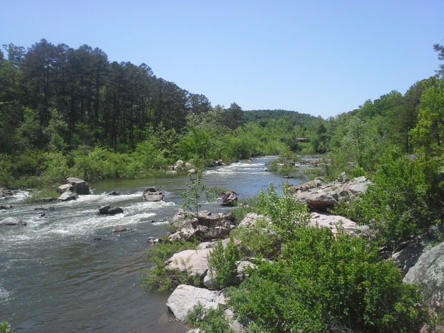 So it continues to follow the river for about a mile in total, and at just before a mile is a bluff where you can overlook the river below. It is a neat little secluded spot, and if you are there on a summer weekend you will very likely see people below you, floating down the river on inner-tubes or rafts.
